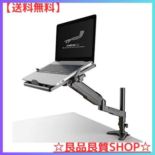 人気モデル登場ロボロビン ノートパソコンアーム 安定性UPトレイ付き 11-17インチ対応 高さ12~60cm 多角度調整 ガススプリング式 広く可動域 グロメットの通販は