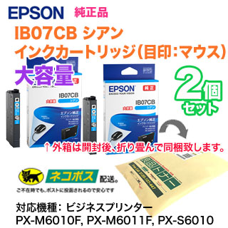 ※代引不可※【純正品 2個セット】 EPSON/エプソン インクカートリッジ IB07CB 大容量 シアン 新品 (目印:マウス)(PX-M6010F, PX-M6011F, PX-S6010 対応)