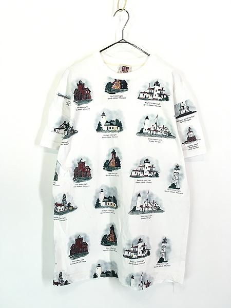 【爆発的な人気】古着 90s USA製 Art Unlimited 灯台 マルチ 総柄 アート 100%コットン Tシャツ M 古着の通販は