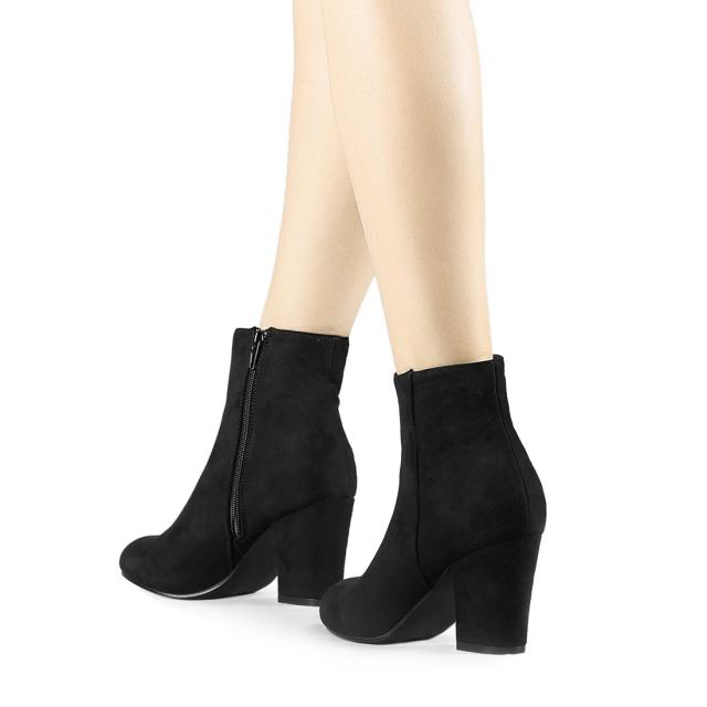 Allegra K アンクルブーツ ラウンドトゥ サイドジッパー チャンキーヒール レディース ブラック 22.5 cmの通販は