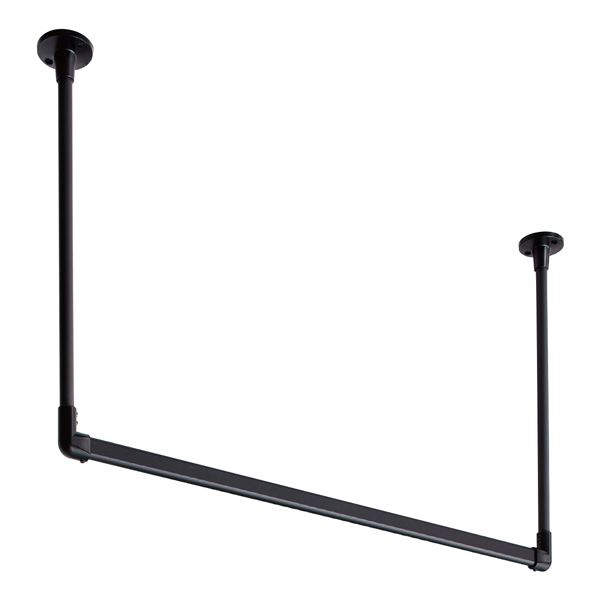 幅900mm×高さ450mmのブラックハンギングバー シンプルでスタイリッシュなデザインでお部屋を華やかに演出 整理 収納 やディスプレイに便利なCタイプセット 家具や小物を飾るのに最適なサイズで、おしゃれな空間作りに欠かせないアイテム 黒 30017002 ハンギングバー H1 天井付 Cタイプセット ブラック 約W900mm×H450mm 黒