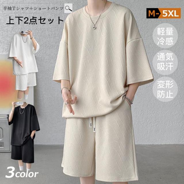 素晴らしい品質セットアップ 上下セット メンズ 夏 半袖 イージーパンツ 夏服 シャツ ハーフパンツ クルーネック ショートパンツ 短パン 無地 部屋着の通販は