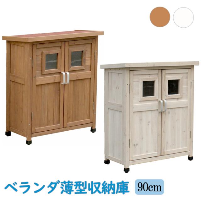 収納庫 屋外 収納棚 物置 木製 薄型 スリム ベランダ 収納 ストッカー 棚 物置き 収納 玄関 庭 屋外収納 屋外物置 倉庫 ガレージ 雨よけ ベランダ収納庫 ラック ガーデニング 扉付 屋外薄型収納庫 高さ92cmタイプ ライトブラウン ホワイトの通販は