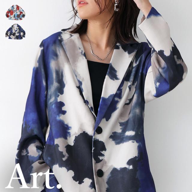 py-00758 長袖 水彩柄 アート柄 柄 羽織り アウター ゆったり セットアップ テーラードジャケット テーラード 高級感 総柄 前開き レトロ ニュアンス柄 大きめ 大きいサイズ