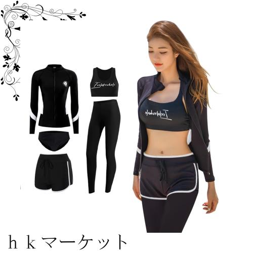 【大人気,高品質】[ANGJ] フィットネス水着 レディース 水着 5点セット UVカット 長袖水着 水陸両用 スポーツブラ ショーツ ショートパンツ レギンスの通販は