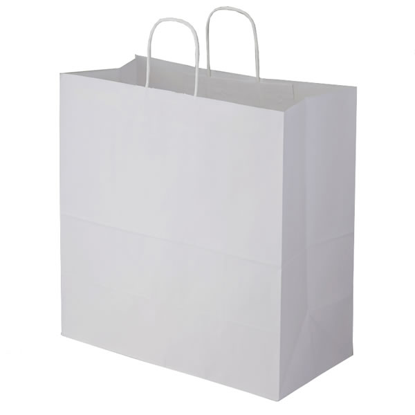 正面巾が大きく、マチも最大級の定番大型規格です。汎用性の高い白無地ですので、様々な用途にご使用頂けます。●手紐:丸紐白●入数:50枚