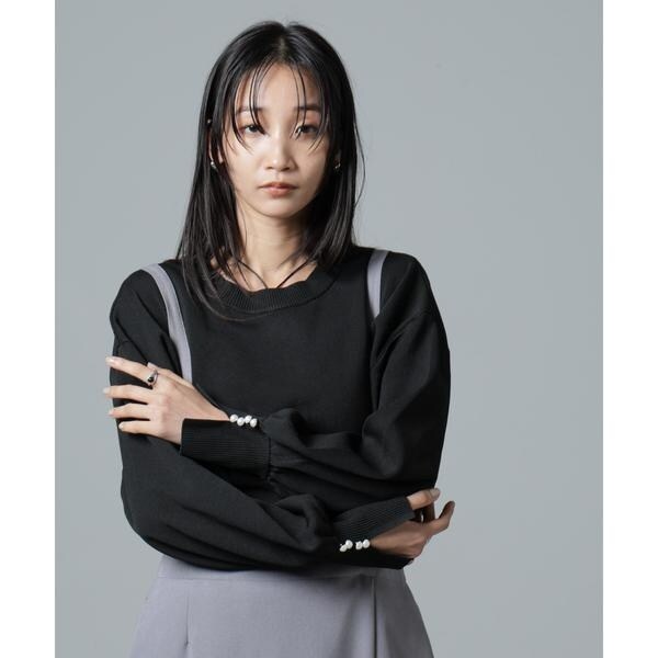 アクセントを添える袖口パールがポイント◎