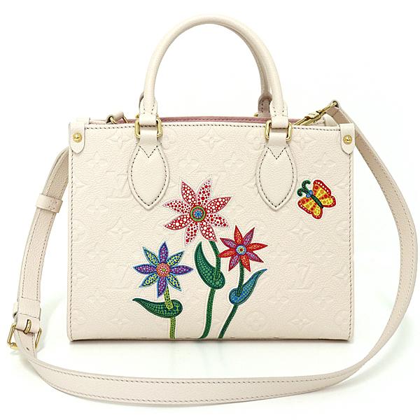 ◆ルイヴィトンと草間彌生コレボレーションの限定モデルのLVxYK オンザゴー PMです。モノグラムアンプラントレザーに3つの花と蝶のイラストがあしらわれています。限定コラボモデルならではのカラーリングやディティールをお楽しみ頂けるアイテムです。