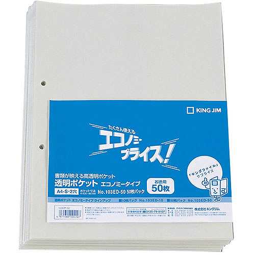 【5個セット】 KING JIM キングジム 透明ポケット エコノミータイプ A4S KJ-103ED-50X5 (倉庫AN)の通販は