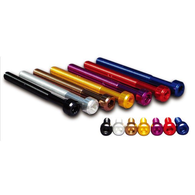 必要数を各メーカーの車種に合わせてパッケージしたセットをご用意。左右クランクケース、マグネトー、ジェネレーターカバーなどのボルト類の他に、焼付き防止耐熱グリス、アーレンキー型工具なども付属。もちろんアルマイトカラーも各カラーをご用意していますので、お好みでチョイスできます。