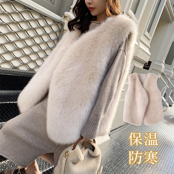魅力の新作ファーベスト 毛皮ベスト ふわふわ ベスト レディース フェイクファー ファージャケット 秋冬 保温 防寒 ノースリーブ ボリューム 暖かい 送料無料の通販は