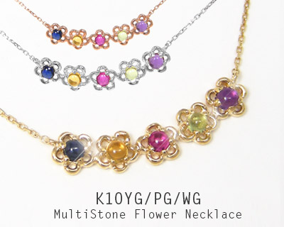 人気絶頂マルチストーン ネックレス K10YG フラワーの通販は