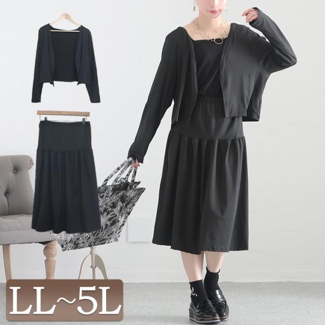 【No.1に挑戦!】春新作 大きいサイズ レディース カーディガン スカート ワンピース カーディガン&2wayスカート2点セット 2点セット セット 2way ロングスカート ミニワンピ ベアトップ フレア 羽織り トッパー 無地 長袖 韓国 春服 夏服 秋服 LL 2L 3L 4L 5L ブラック 韓国ファッションの通販は