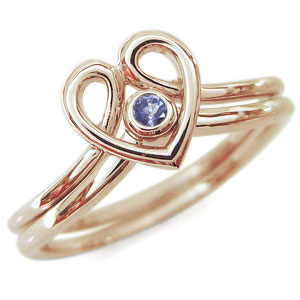 12月誕生石タンザナイトを一粒使用した、2本セットの10金製の、ハートモチーフピンキーリング(指輪)です。