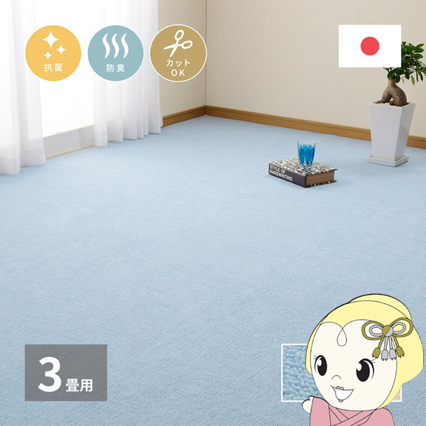 ペットなどの臭いも気にならない、防臭・抗菌カーペット。 弾力性があり復元性にすぐれていてへたりにくい。ふかふかとした肌触りが特徴。 自らでカット加工可能。 ■サイズ(cm):176×261(江戸間3帖) ■カラー:ブルー ■組成:ポリエステル100%・裏面:不織布 ■洗濯:不可 ■厚み(mm):5 ■すべり止め:なし ■原産国:日本 ■抗菌・防臭 ■フリーカット ■ホットカーペット・床暖房OK ※写真はメーカー様のカタログ等から掲載させて頂いております。 実物の商品と写真の色が若干写真写り等により異なる場合がありますのでご注意くださいませ。 万が一の際でございましても返品はお受け致しかねます。 ※記載は商品仕様の一部です。仕様説明不足等の理由での返品はできません。特に適合等は必ずご確認ください。