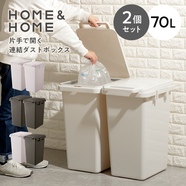 【2024年製】ゴミ箱 HOME&HOME 片手で開く連結ダストボックス70J 2個セット 70L グレー / ダークグレー | ごみ箱 おしゃれ ふた付き フタ付き 分別 ペール ダストボックス 70リットル キッチン 屋外 室内 台所 ジョイントの通販は