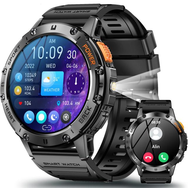 ◆商品名:スマートウォッチ 【2025革新モデル 軍用規格&防水防塵耐衝撃】1.43インチAMOLED高精度画面 懐中電灯付き 通話機能付き 530mAh長持ちバッ