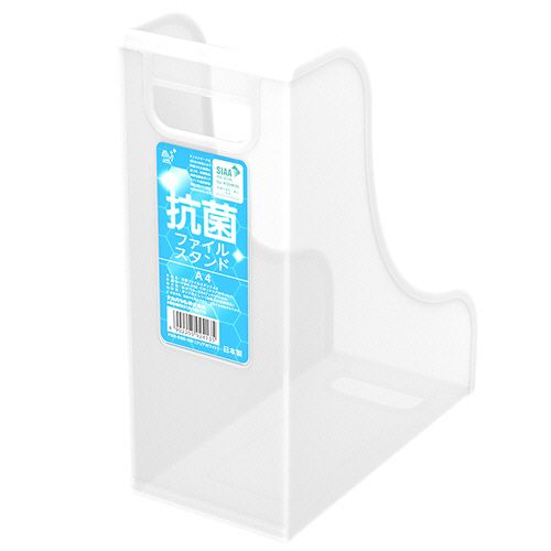 ●A4サイズの抗菌ファイルスタンド、色はクリアホワイトです。10個セット。●安全性が高く、効果が長続きする無機系抗菌剤を本体に練り込んでいます。●「ご家庭」「オフィス」「官公庁」「病院」「学校」などで、複数の方々が触れる共有資料等の整理収納用品として衛生的にお使いいただけます。