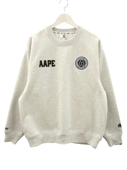 【中古】未使用品 アベイシングエイプ APE Logo patch crew neck sweatshirt スウェットシャツ L ライトグレーの通販は