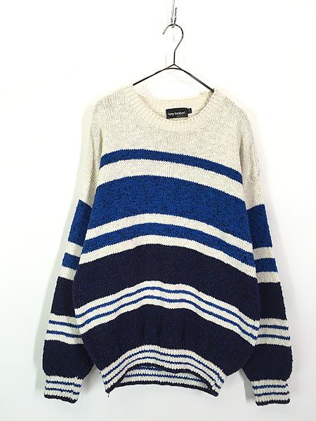 古着 90s USA製 TONY LAMBERT マルチ ボーダー コットン ニット セーター Lの通販は