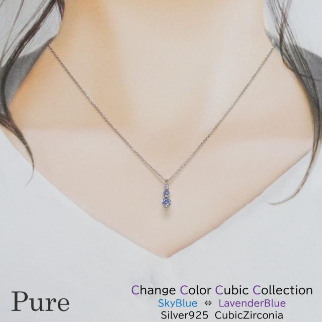 緊急大幅値下げネックレス ペンダント レディース 20代 30代 40代 50代 キュービック ジルコニア シルバー ゴールド ブルー パープル 色が変わる 金属アレルギー 対応 変色防止の通販は