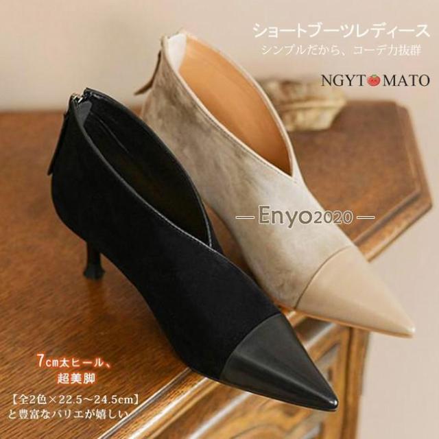 送料無料祭りショートブーツ レディース ショート丈 ピンヒール ウエスタンブーツ 疲れにくい あるきやすい 軽い 異素材切り替え スエード調 ポインテッドトゥの通販は