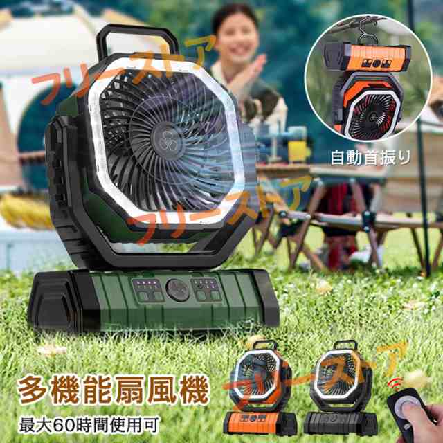 扇風機 キャンプ アウトドア 自動首振り コードレス 卓上 吊り下げ 小型 サーキュレーター 充電式 タイマー LEDライト 軽量 低騒音 冷風 おしゃれ 防災の通販は