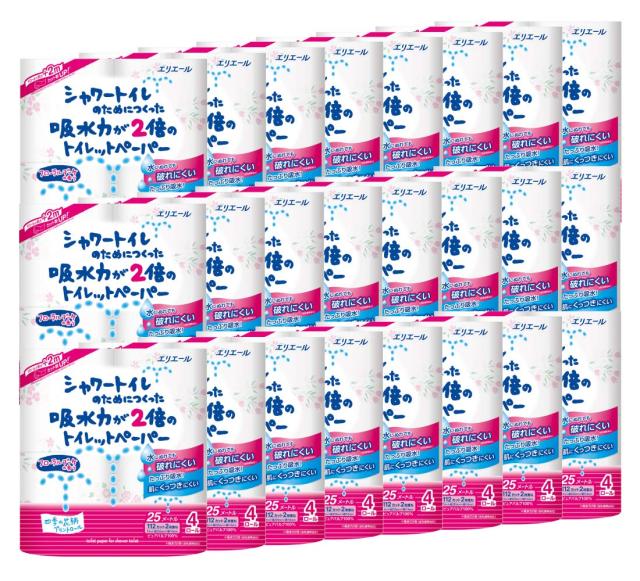 エリエール トイレットペーパー シャワートイレのためにつくった吸水力が2倍のトイレットペーパー 25m(112シート)×96ロール(4ロール×24