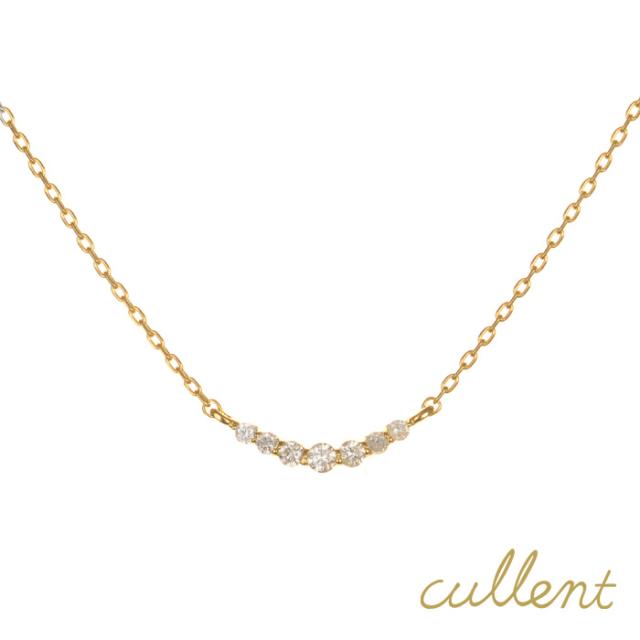 ■コメント:プチサイズのダイヤモンドを7石セッティングしたシンプルネックレス。ダイヤの大きさがグラデーションになっていて、輝きの抑揚が美しく煌きます。優しいカーブを描くプチサイズのダイヤモンドがデコルテに馴染みチェーンの一部のようなさりげなさが洗練された印象です。