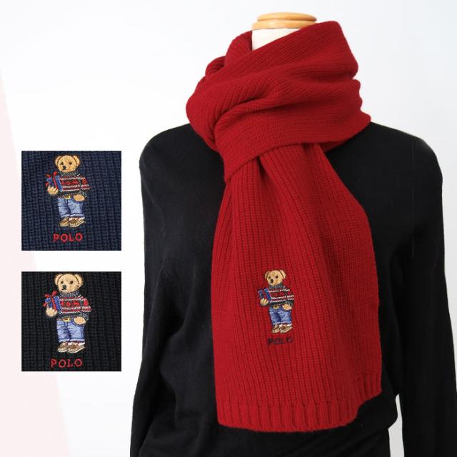 POLO RALPH LAUREN ポロラルフローレン ニットマフラー PC1181 RIBBED HOLIDAY BEAR SCARF ポロベアー 男女兼用 メンズ レディース 通勤 通学 ウール プレゼント ギフト ブランドの通販は