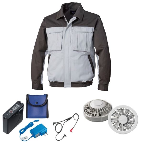 【今日の超目玉】KU91920 空調服 R 綿厚手 脇下マチ付き FAN2200G・RD9261・LISUPER1セット シルバー×ダークグレー LL |b04の通販は