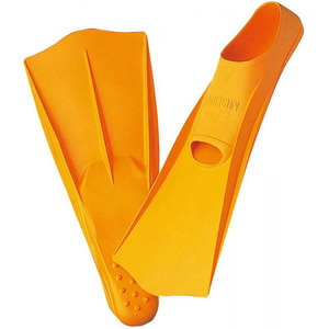 ●かかとまで包み込むラバーフィン。水中に浮くから脱げても安心です。 /