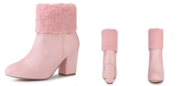本物Allegra K アンクルブーツ フェイクファー ラウンドトゥ ブロックヒール スノー レディース ピンク 22.5 cmの通販は