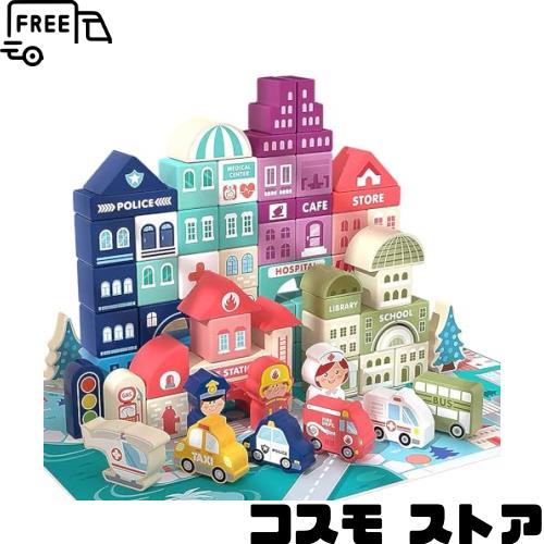 人気製品OTONOPI 積み木 モンテッソーリ おもちゃ 木製 木製パズル 知育玩具 積み木おもちゃ 都市 建物 カラフル 立体パズル 子供積み木 色の形認