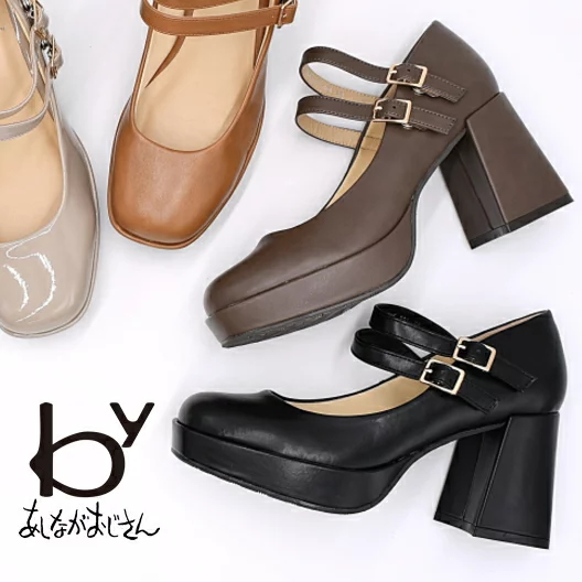 【特別価格で大奉仕!】by あしながおじさん 厚底 ダブルストラップパンプス 8980645 ストラップパンプス ハイヒール ブラック 黒 ライトベージュ 冠婚葬祭 入学式 卒業式の通販は